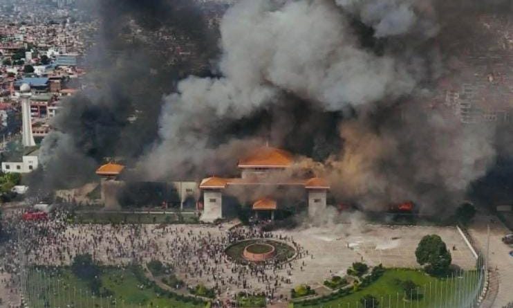மேலும் நிலமை தீவிரமடைந்து தற்சமயம் நேபாளத்தின் பாராளுமன்றம் ஆர்ப்பாட்டக்காரர்களால் எரியூட்டப்பட்டுள்ளதாக சர்வதேச ஊடகங்கள் வீடியோ ஆதாரங்களுடன் செய்தி வெளியிட்டுள்ளன.