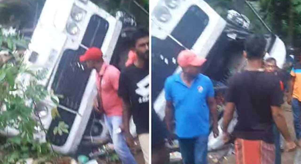 ஆடைத் தொழிற்சாலை ஊழியர்களை ஏற்றிச் சென்ற பேருந்து ஒன்று வீதியை விட்டு விலகி கவிழ்ந்து விபத்துக்குள்ளாகியுள்ளது.