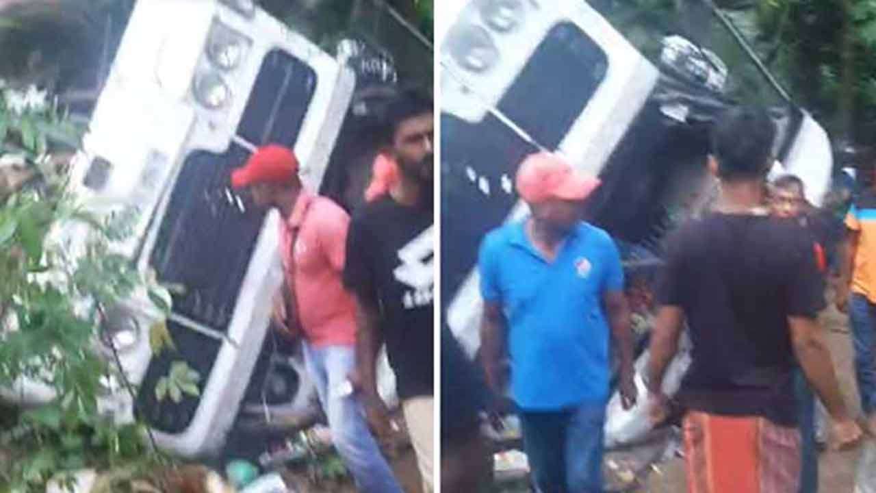 ஆடைத் தொழிற்சாலை ஊழியர்களை ஏற்றிச் சென்ற பேருந்து ஒன்று வீதியை விட்டு விலகி கவிழ்ந்து விபத்துக்குள்ளாகியுள்ளது.