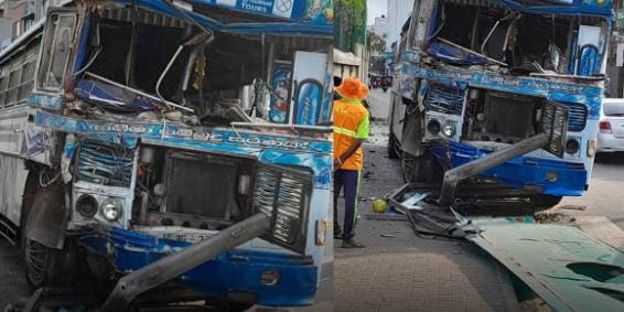 145 ஆம் இலக்க பேருந்து மார்க்கத்தில், புறக்கோட்டை பழைய மீன் சந்தைக்கு அருகிலுள்ள பேருந்து நிறுத்தத்தின் மீது தனியார் பேருந்து ஒன்று மோதியதில் இந்த விபத்து நேர்ந்துள்ளது.