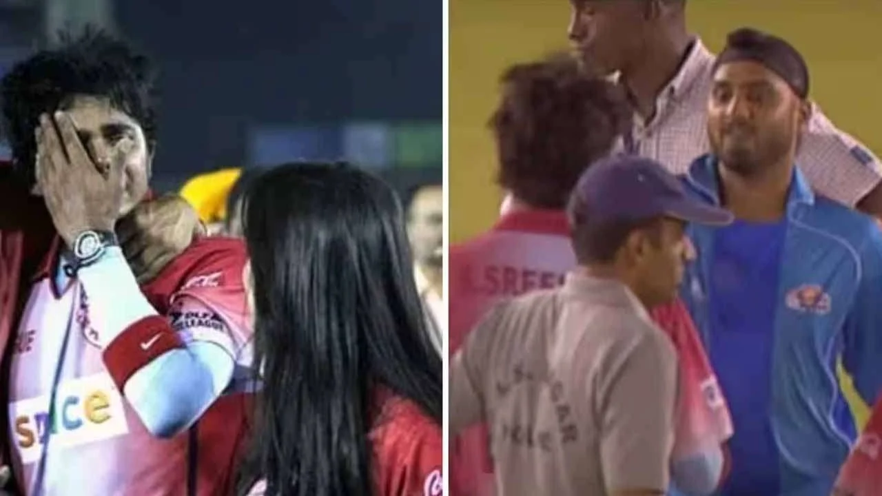 ஆட்டம் முடிந்து வீரர்கள் கைகுலுக்கும் போது, ஹர்பஜன்சிங், ஸ்ரீசாந்தின் கன்னத்தில் அடிப்பது போன்ற காட்சி அந்த வீடியோவில் உள்ளது.
